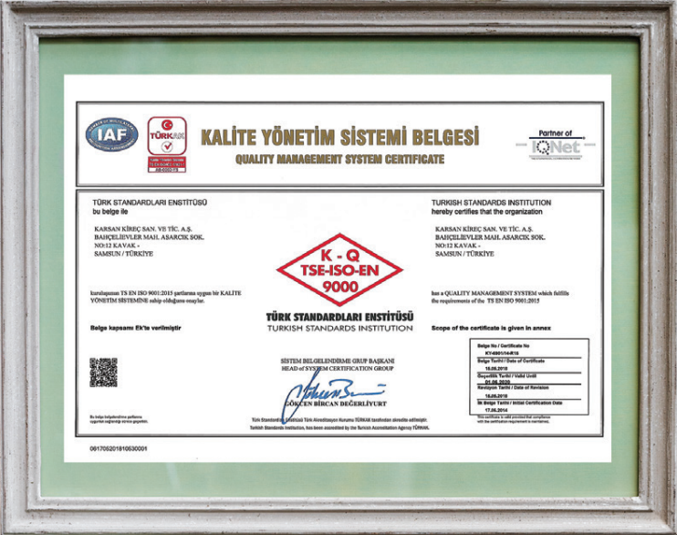 TSE EN ISO 9001:2015 BELGESİ