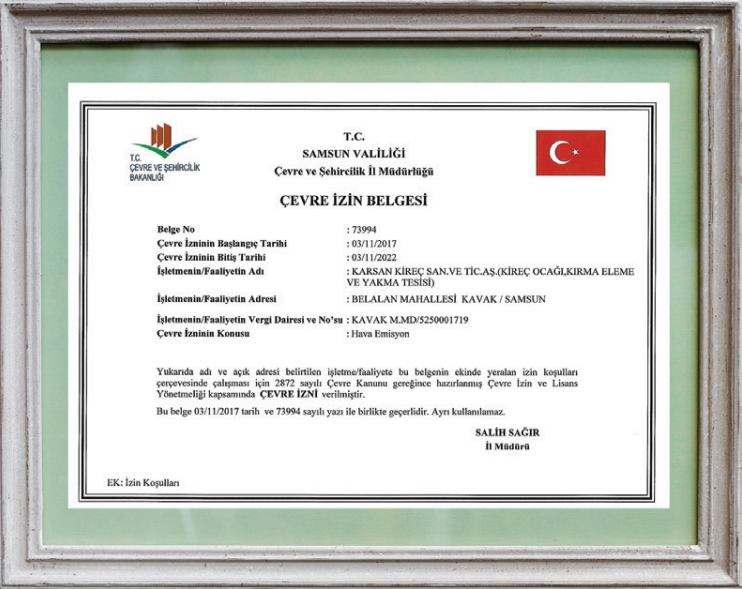 KİREÇ TAŞI OCAĞI İŞLETME RUHSATI BELGESİ