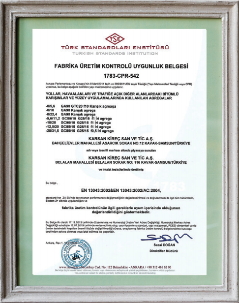 CE BELGESİ - ASFALT AGREGALARI
