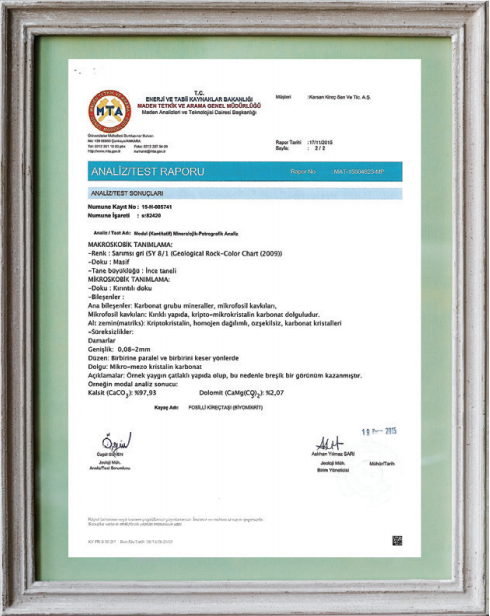 MTA KİREÇ TAŞI RENK ANALİZ RAPORU